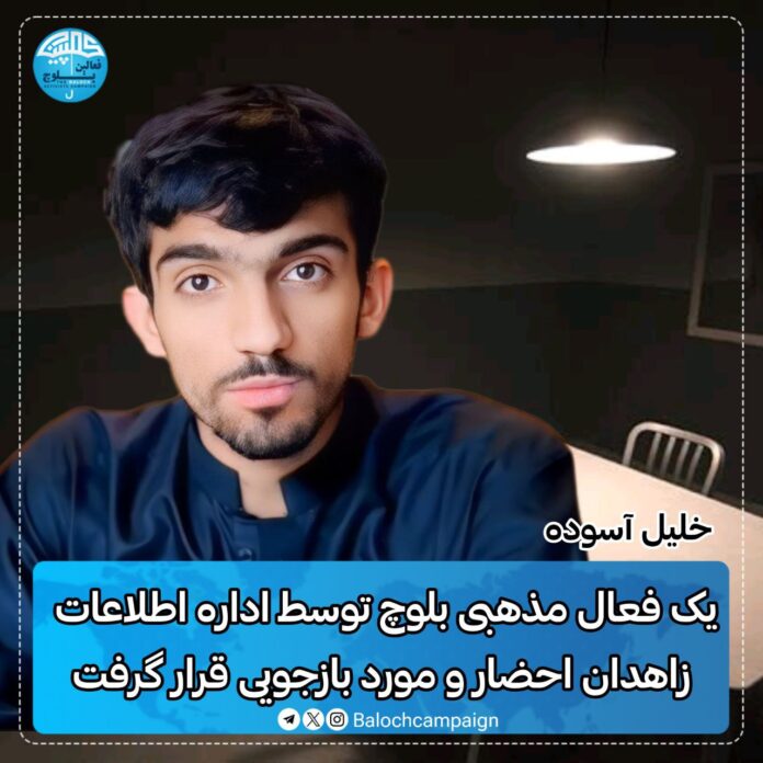 کمپین فعالین بلوچ| روز شنبه ۲۱ مهر ماه ۱۴۰۳، یک شهروند بلوچ و از فعالان مذهبی به اداره اطلاعات زاهدان احضار و مورد بازجویی قرار گرفت. هویت این شهروند بلوچ “خلیل آسوده” معروف به مولوی برکت و اهل منطقه شیرآباد زاهدان عنوان شده است. گفته می شود، آقای آسوده از فعالان مذهبی و فضای مجازی است که از کمبود و عدم ارائه خدمات اجتماعی و دولتی گزارش‌های تصویری تهیه می‌کند و در صفحه شخصی خود در اینستاگرام به اشتراک می‌گذارد. از علت احضار این شهروند بلوچ تاکنون اطلاعی در دست نیست.