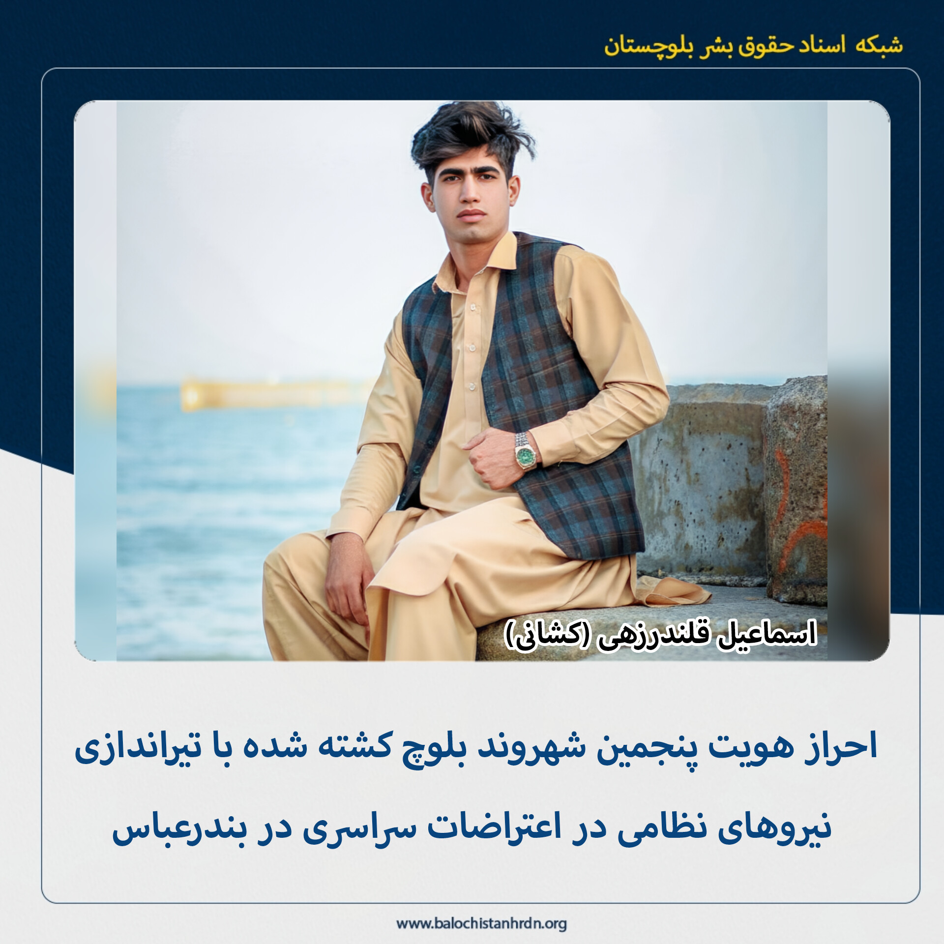 به گزارش شبکه اسناد حقوق بشر بلوچستان (کمپین فعالین بلوچ)، هویت یک شهروند بلوچ دیگر که در جریان اعتراضات سراسری در بندرعباس با شلیک نیروهای نظامی کشته شده بود، احراز شد.