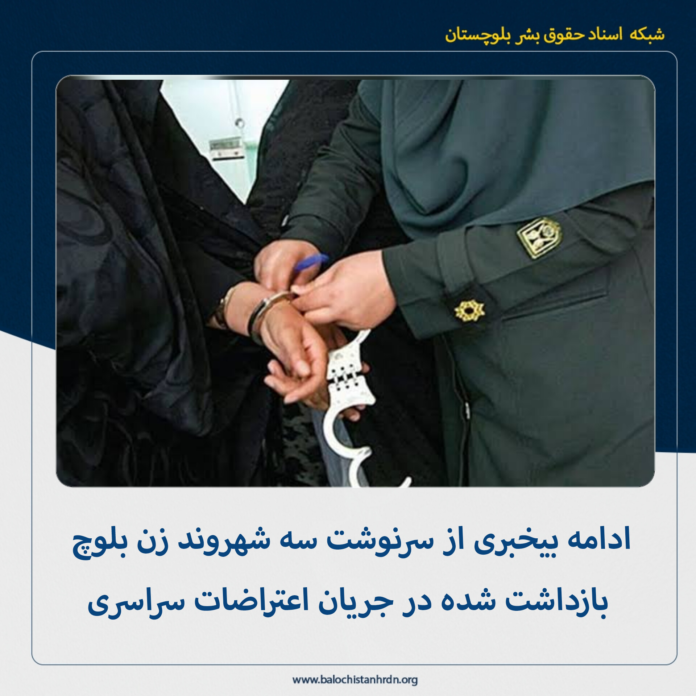 به گزارش شبکه اسناد حقوق بشر بلوچستان (کمپین فعالین بلوچ)، سه شهروند زن بلوچ بازداشت شده در جریان اعتراضات سراسری، همچنان در بلاتکلیفی هستند.