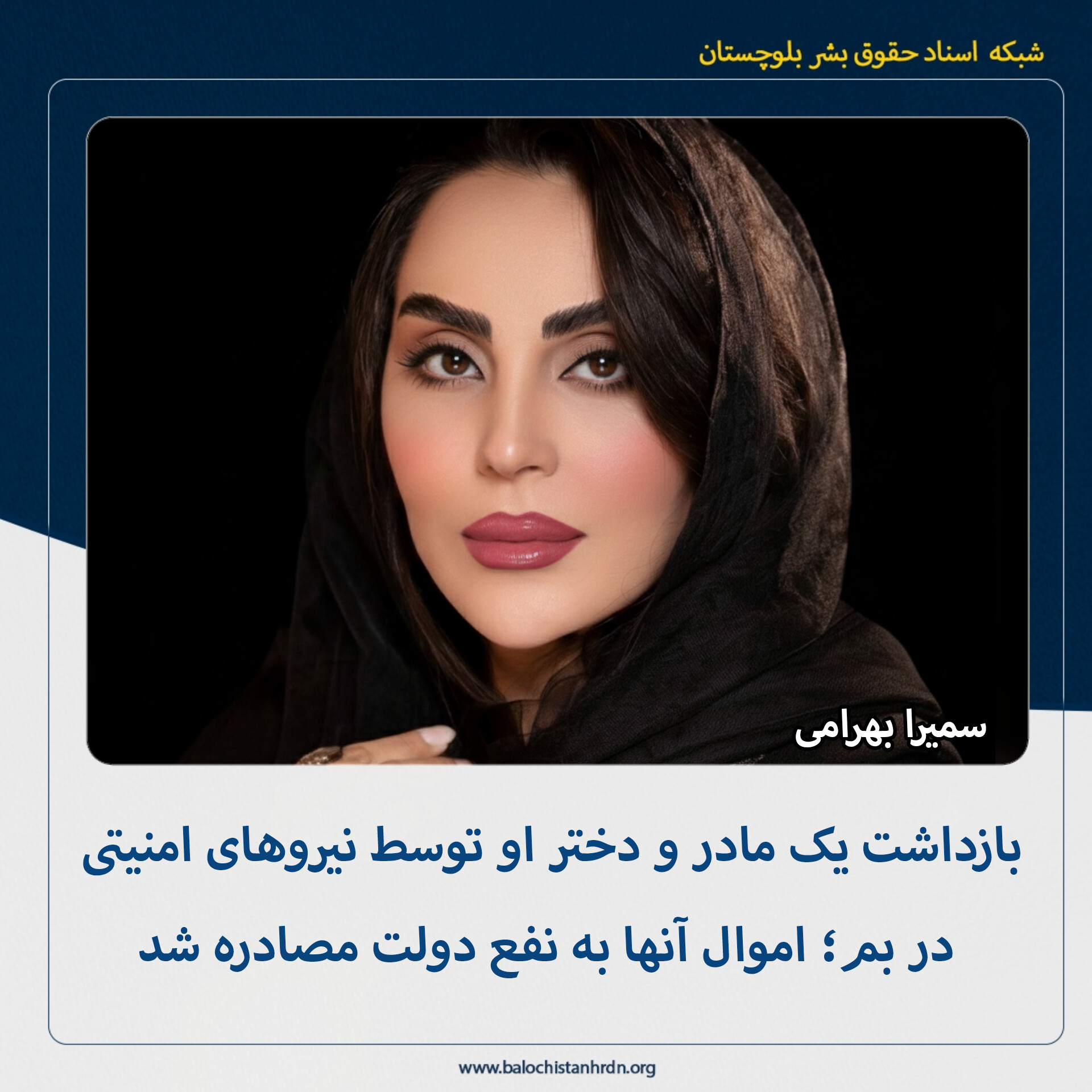 یکی از نزدیکان این دو شهروند به گزارشگر شبکه اسناد حقوق بشر بلوچستان گفت: “خانم سمیرا از آرایشگران معروف شهر بم است که در روز جمعه ۱۹ دی ماه به همراه دخترش با یورش نیروهای امنیتی به منزل آنها بازداشت شده است.”