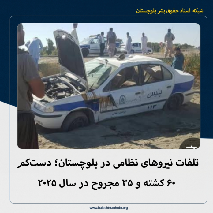 به گزارش شبکه اسناد حقوق بشر بلوچستان (کمپین فعالین بلوچ)، در سال ۲۰۲۵ میلادی دست‌کم ۶۰ تن از نیروهای نظامی در بلوچستان و مناطق بلوچ‌نشین جان خود را از دست داده و ۳۵ تن دیگر مجروح شده‌اند.