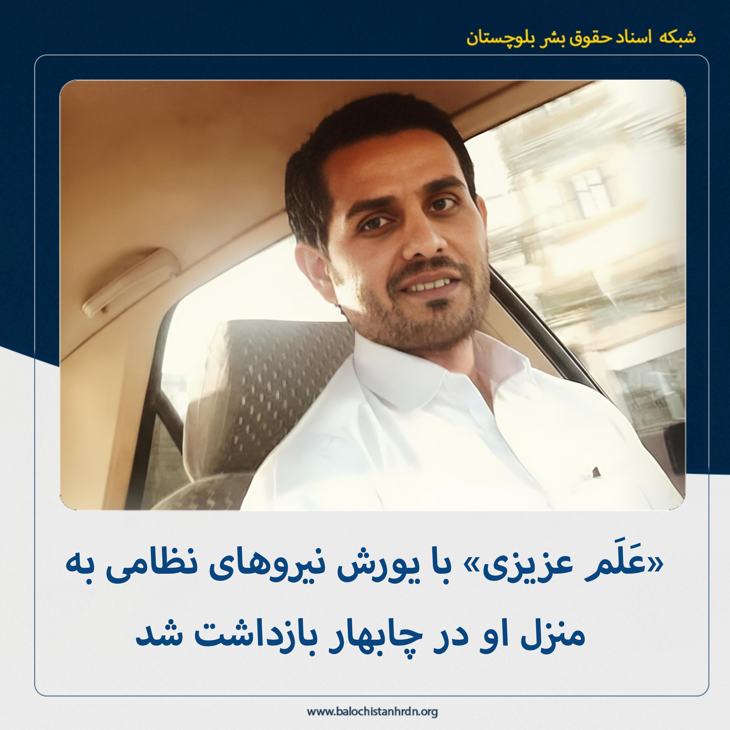 «عَلَم عزیزی» با یورش نیروهای نظامی به منزل او در چابهار بازداشت شد