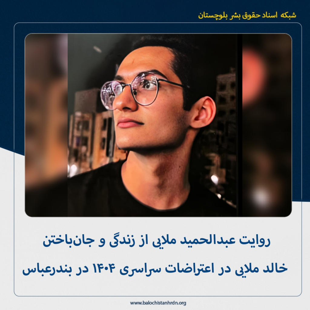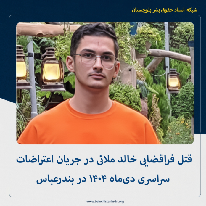 خالد ملایی، دانشجویی جوان و شهروندی بدون سابقه خشونت، در جریان یک اعتراض خیابانی جان خود را از دست داد. مرگ او نمونهای آشکار از نقض حق بنیادین حیات و استفاده از سلاح گرم علیه معترضان است.