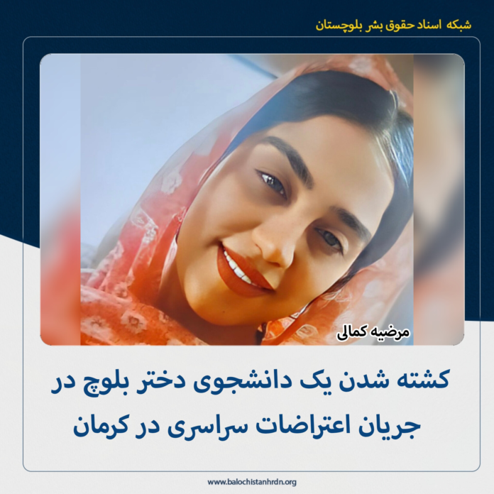 یک دانشجوی دختر بلوچ در جریان اعتراضات سراسری با شلیک گلوله نیروهای نظامی در کرمان کشته شد.