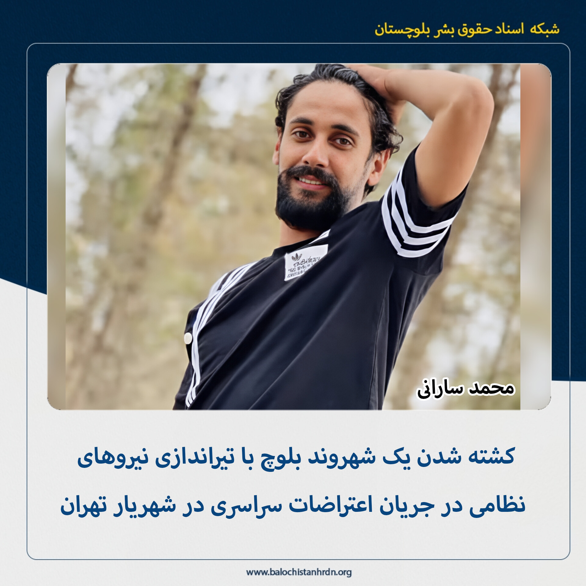 هویت این شهروند بلوچ، «محمد سارانی»، ۳۰ ساله فرزند عیسی، متأهل و دارای یک فرزند، اهل شهر دوست محمد شهرستان هیرمند و ساکن شهریار تهران اعلام شده است.