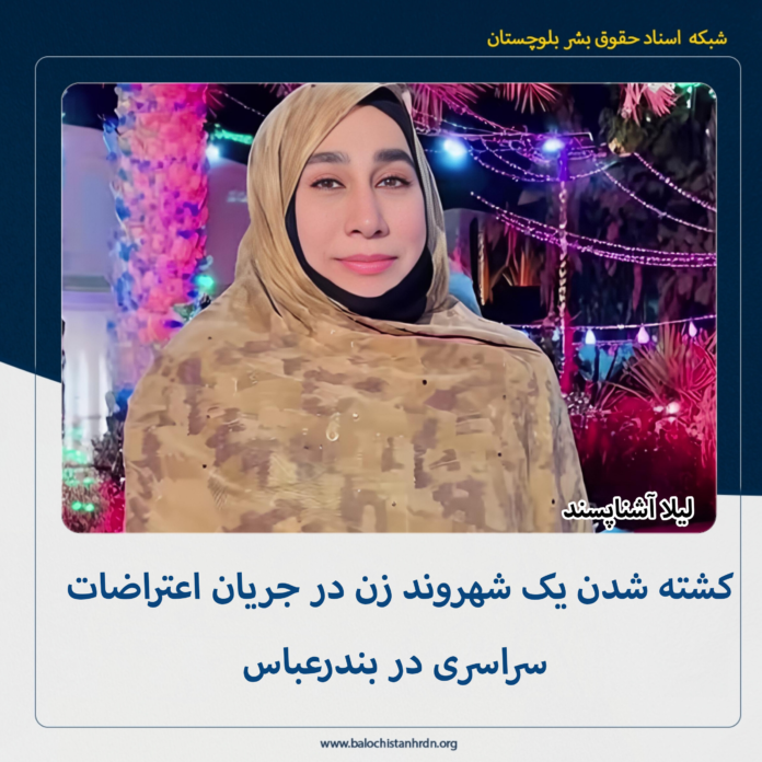 به گزارش شبکه اسناد حقوق بشر بلوچستان (کمپین فعالین بلوچ)، شامگاه جمعه ۱۹ دی ماه ۱۴۰۴، یک شهروند زن اهل بندرعباس در جریان اعتراضات سراسری توسط نیروهای نظامی کشته شد.