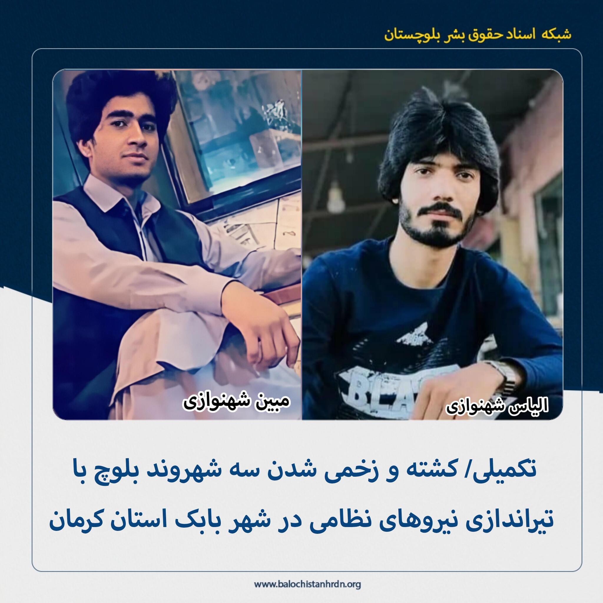 تکمیلی/ به گزارش شبکه اسناد حقوق بشر بلوچستان (کمپین فعالین بلوچ)، روز سه شنبه هفتم بهمن ماه ۱۴۰۴، با تیراندازی نیروهای نظامی در شهر بابک استان کرمان، یک شهروند بلوچ کشته و دو تن دیگر پس از مجروح شدن بازداشت شدند.
