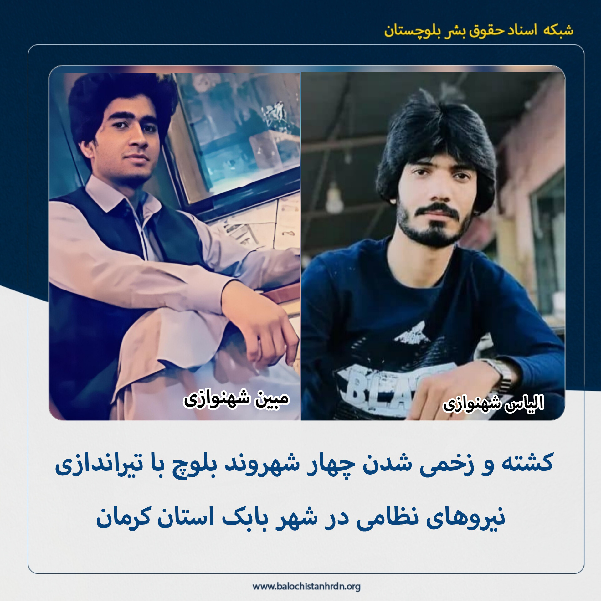 به گفته منابع شبکه اسناد، این چهار شهروند از بلوچستان در حال سفر به یزد بودند که در شهر بابک استان کرمان توسط نیروهای اداره اطلاعات مورد هدف تیراندازی قرار گرفتند.