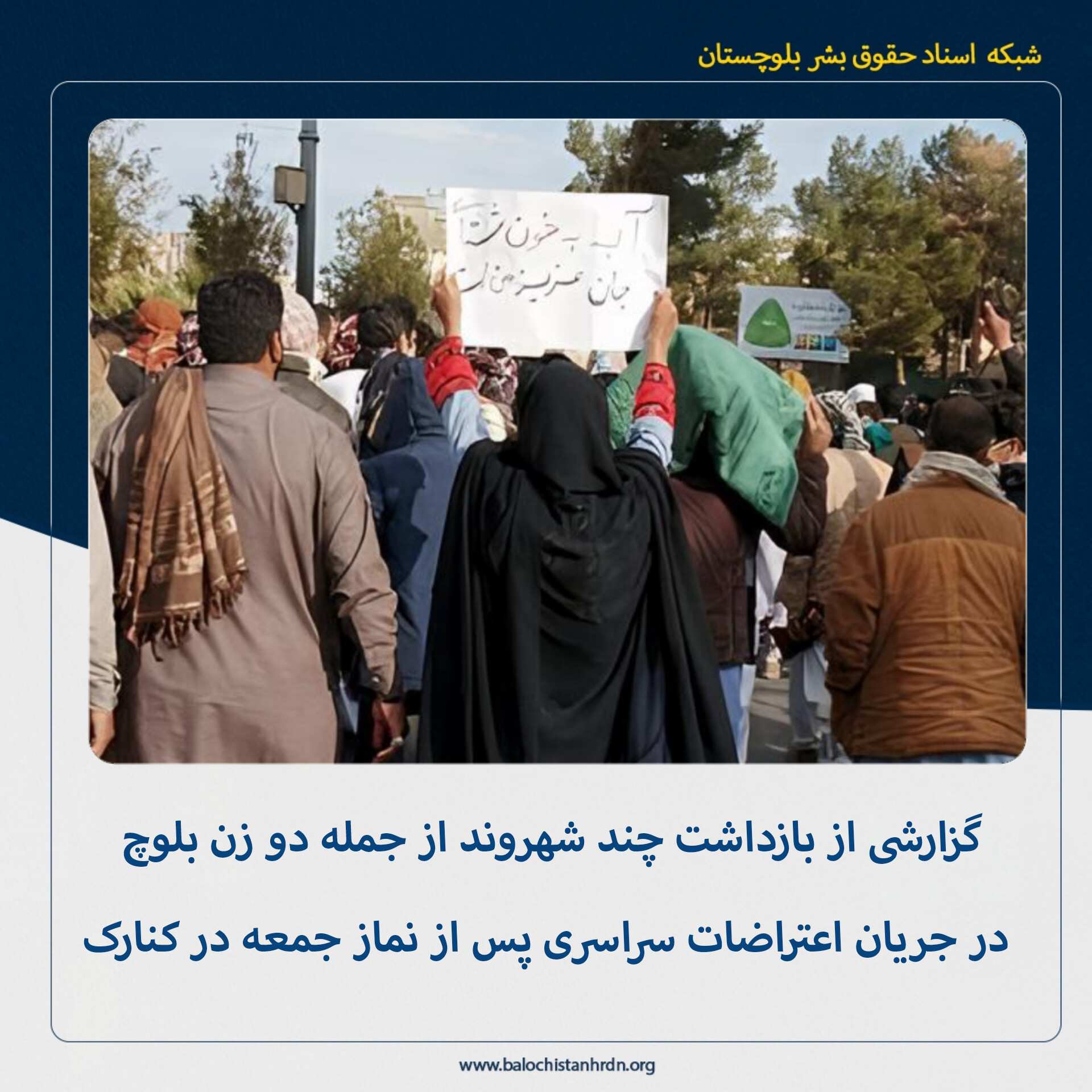 به گزارش شبکه اسناد حقوق بشر بلوچستان (کمپین فعالین بلوچ)، در پی تجمعات اعتراضی شهروندان در شهر کنارک، گزارش‌ها از بازداشت چندین شهروند، از جمله دست‌کم دو زن جوان، توسط نیروهای امنیتی و انتظامی حکایت دارد.