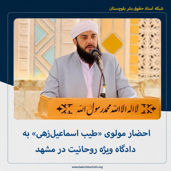 به گزارش شبکه اسناد حقوق بشر بلوچستان (کمپین فعالین بلوچ) – مولوی محمدطیب اسماعیل زهی به دادگاه ویژه روحانیت در مشهد احضار شد.