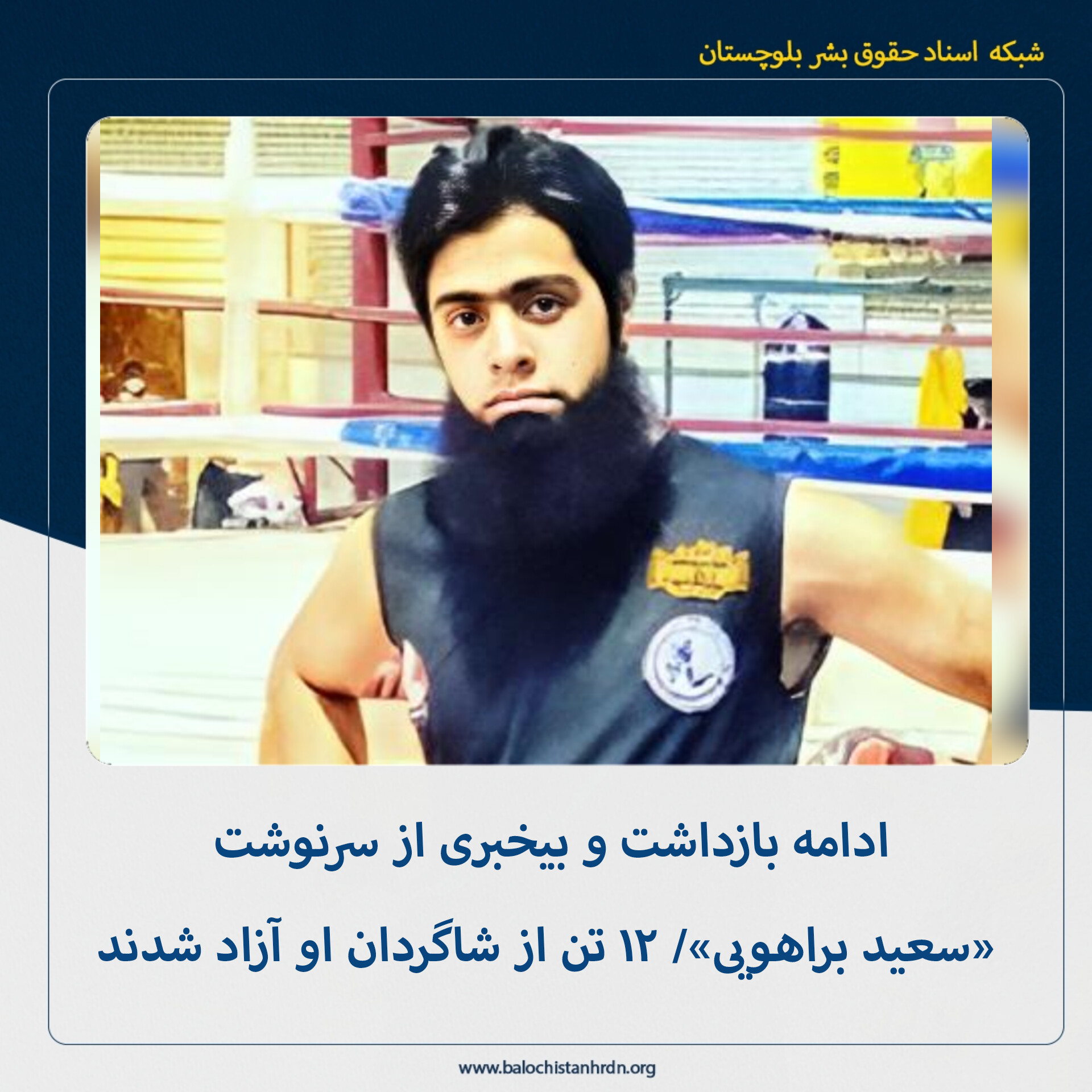 به گزارش شبکه اسناد حقوق بشر بلوچستان (کمپین فعالین بلوچ) – ۱۲ تن از شاگردان «سعید براهویی» آزاد شدند اما وی همچنان در بازداشت و بیخبری بسر میبرد.