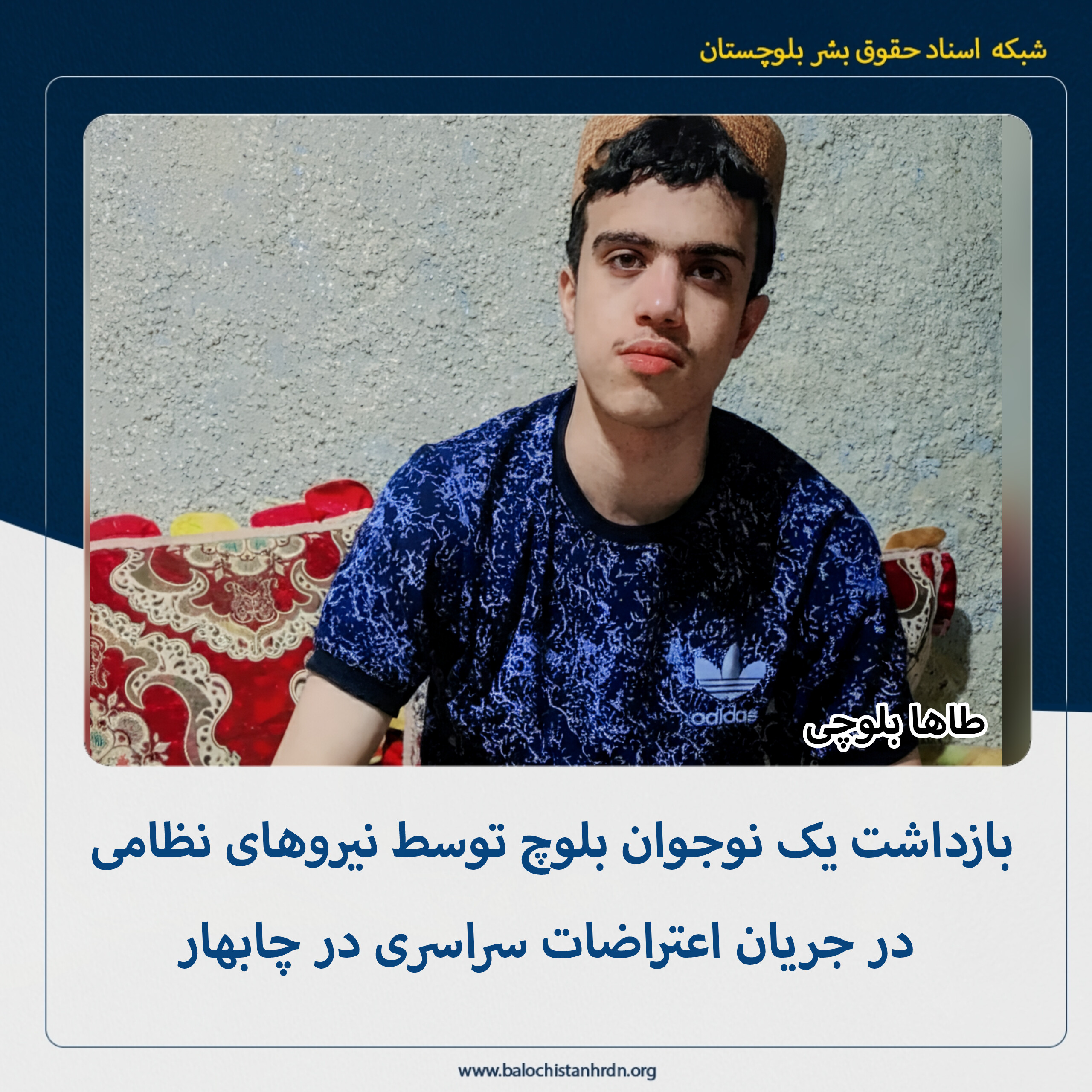 بازداشت یک نوجوان بلوچ توسط نیروهای نظامی در جریان اعتراضات سراسری در چابهار