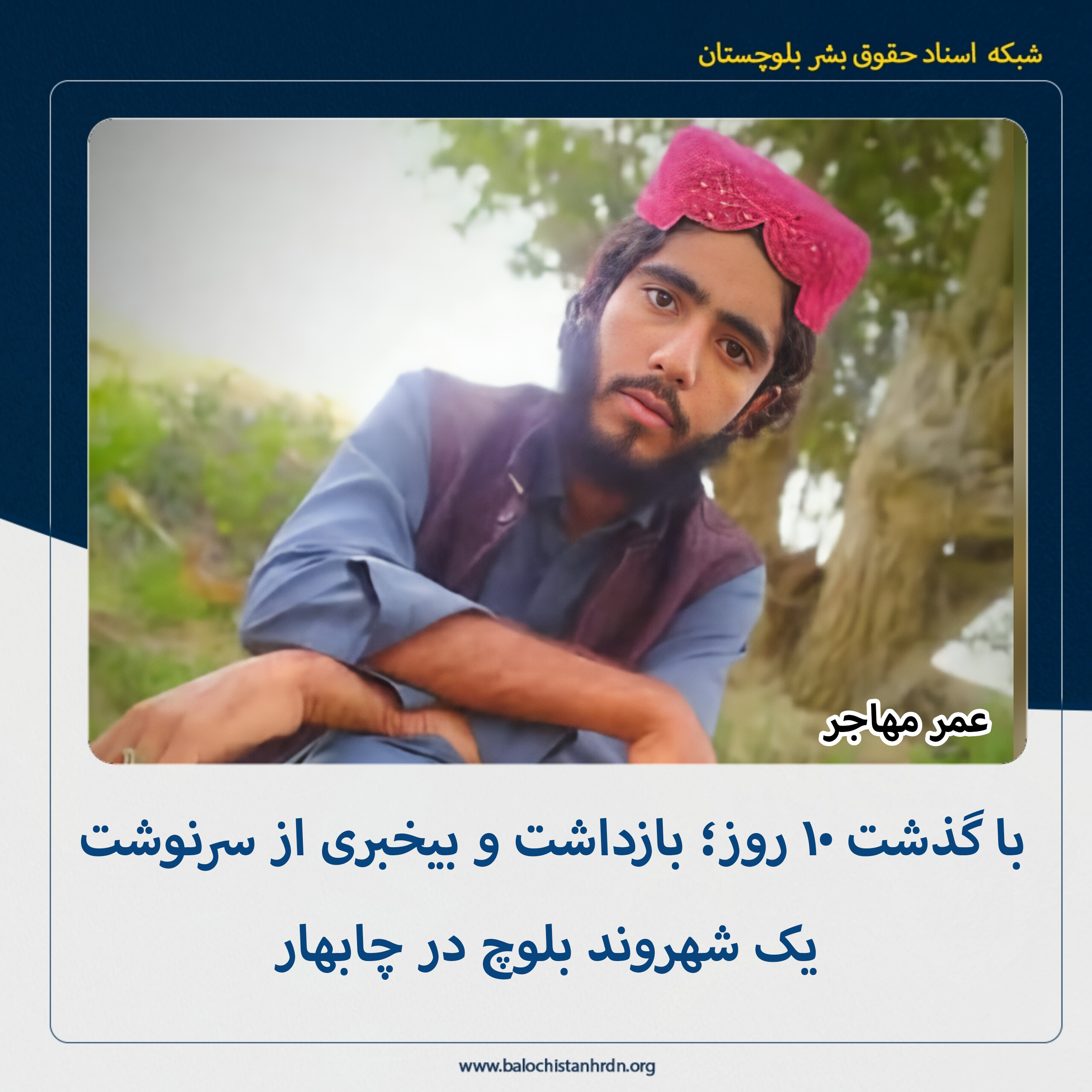 به گزارش شبکه اسناد حقوق بشر بلوچستان (کمپین فعالین بلوچ)، امروز شنبه ۱۸ بهمنماه ۱۴۰۴، یک شهروند بلوچ با گذشت ۱۰ روز از زمان بازداشت، همچنان در بیخبری بسر میبرد.
