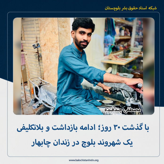 یک شهروند بلوچ که توسط نیروهای امنیتی در چابهار بازداشت شده است، با گذشت ۳۰ روز از زمان بازداشت همچنان در بلاتکلیفی بسر میبرد.