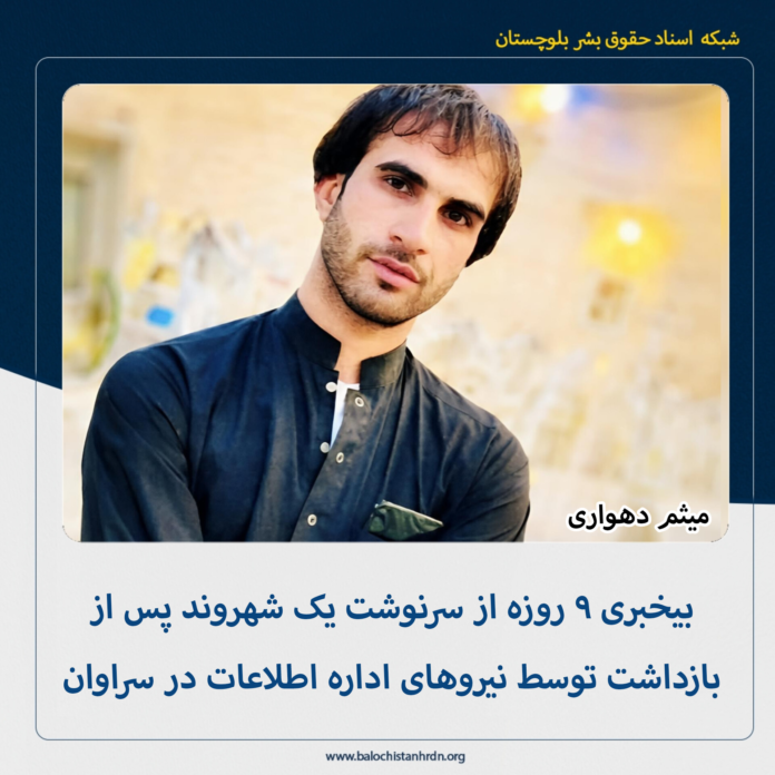 یک شهروند توسط نیروهای اداره اطلاعات در سراوان بازداشت و به مکان نامعلوم منتقل شد. با گذشت ۹ روز از زمان بازداشت، تاکنون هیچ اطلاعی از سرنوشت او در دسترس نیست.