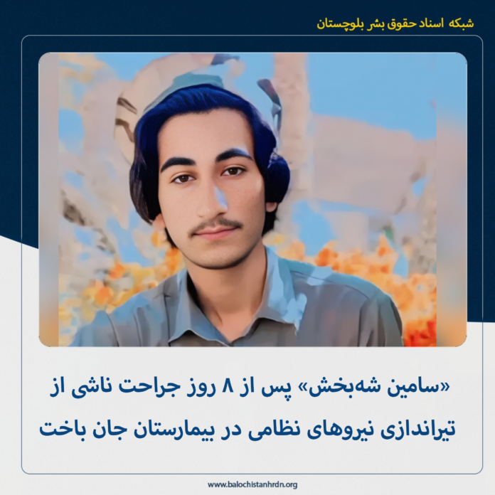 به گزارش شبکه اسناد حقوق بشر بلوچستان – امروز دوشنبه چهارم اسفند ماه ۱۴۰۴، «سامین شه بخش» ۱۸ ساله فرزند درمحمد، پس از هشت روز تحمل جراحت ناشی از تیراندازی نیروهای نظامی در بیمارستان خاتم زاهدان جان باخت.