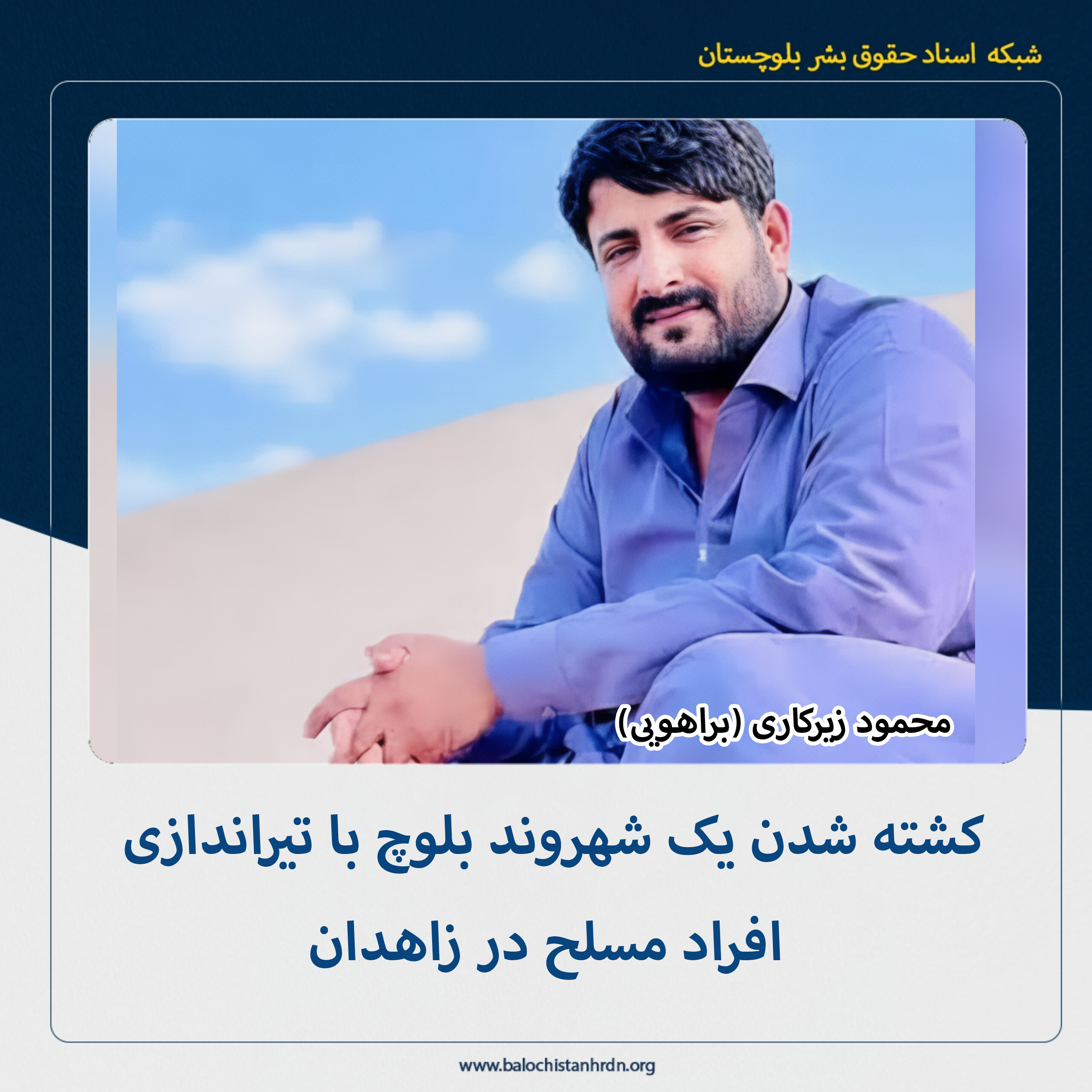 هویت این شهروند، «محمود زیرکاری» (براهویی)، حدودا ۲۳ ساله فرزند داوودخان، اهل زاهدان برای شبکه اسناد احراز شده است.