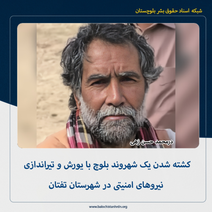 به گزارش شبکه اسناد حقوق بشر بلوچستان (کمپین فعالین بلوچ) – شامگاه یکشنبه ۲۶ بهمن ماه ۱۴۰۴، یک شهروند بلوچ با یورش و تیراندازی نیروهای امنیتی در شهرستان تفتان کشته شد.