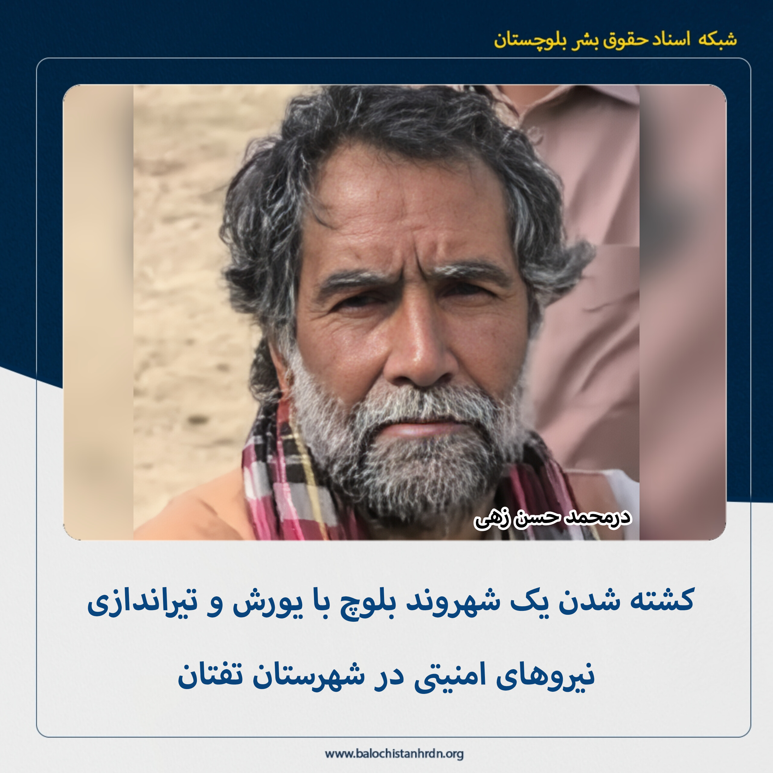 نیروهای امنیتی و لباس شخصی با یورش به روستای چاه احمد شهرستان تفتان، یک شهروند بلوچ را مورد هدف قرار دادند که منجر به کشته شدن او شد.
