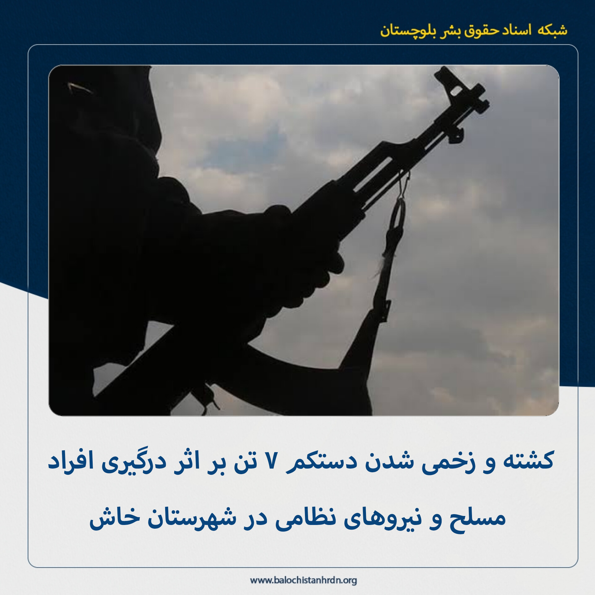 شبکه اسناد حقوق بشر بلوچستان (کمپین فعالین بلوچ) – بامداد امروز چهارشنبه ۲۲ بهمن ماه ۱۴۰۴، در پی درگیری نیروهای نظامی با افراد مسلح در محمودآباد خاش، دستکم ۷ تن از دو طرف درگیری کشته و مجروح شدند.