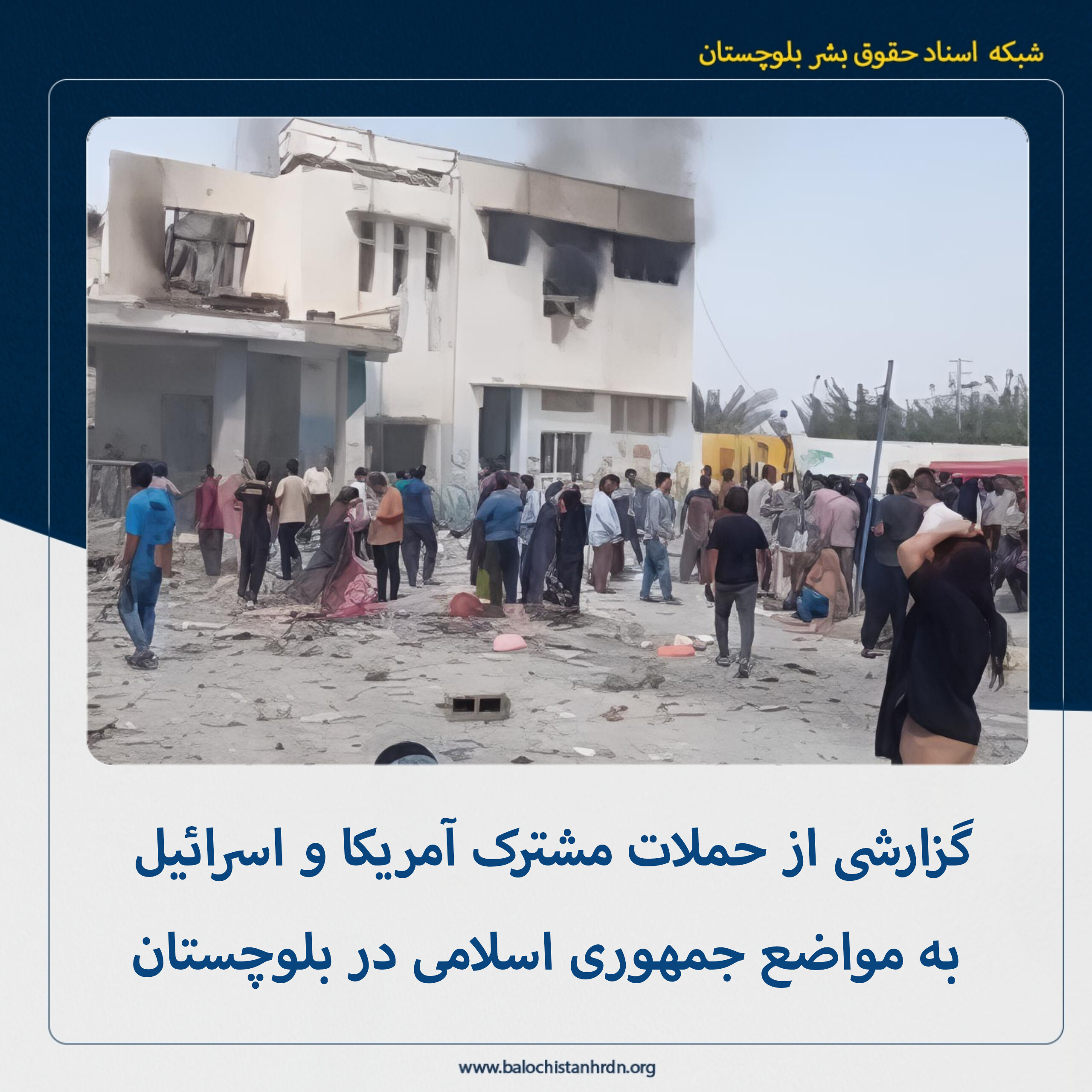 ارتش آمریکا و اسرائیل در حملات مشترک خود در بلوچستان، به مواضع جمهوری اسلامی در ۸ شهرستان حمله کرد که منجر به کشته و مجروح شدن ده ها تن از نیروهای نظامی و شهروندان عادی که بسیاری از آنها کودک بودند، شد.