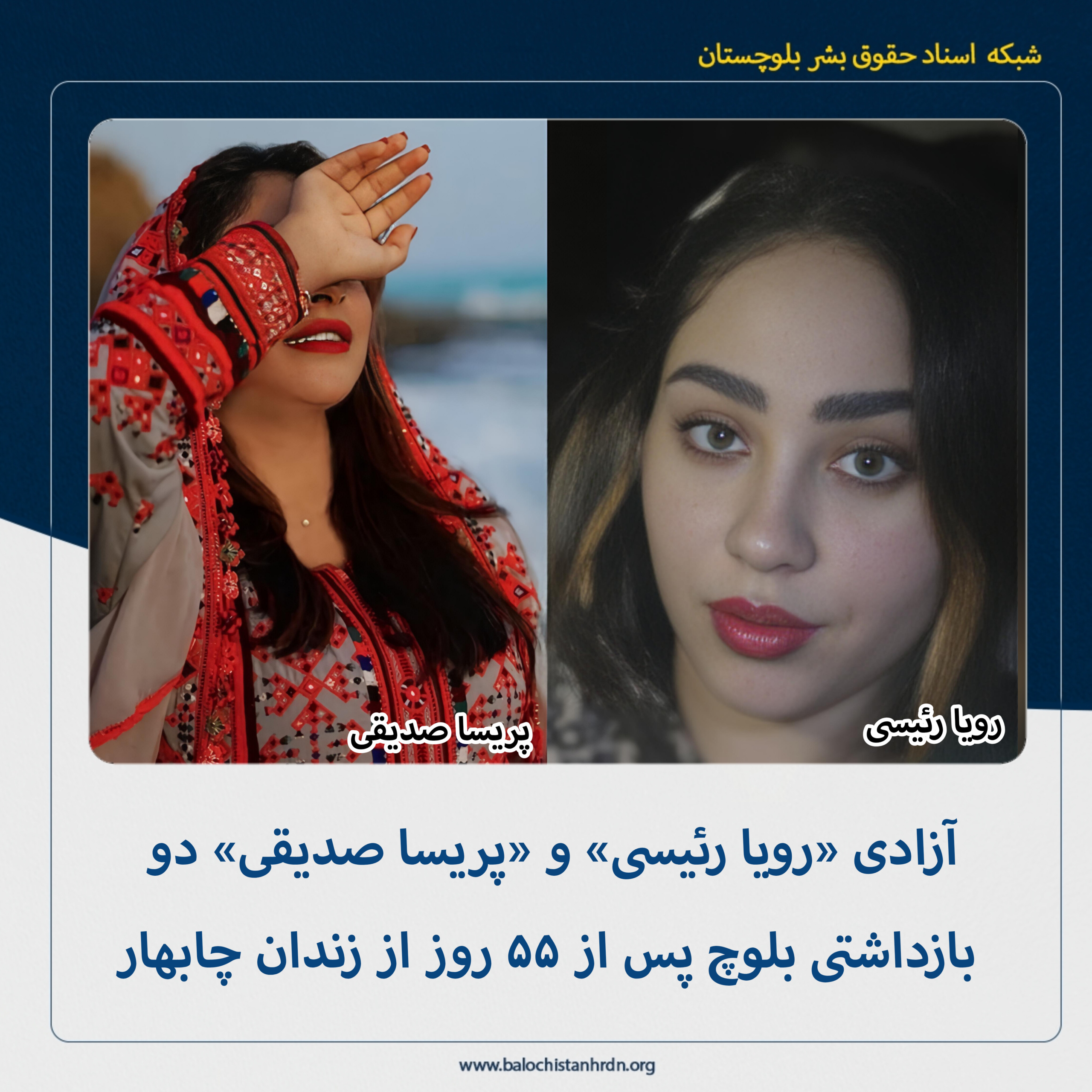 دو زن بلوچ که در جریان اعتراضات سراسری در چابهار بازداشت شده بودند، پس از گذشت ۵۵ روز از زندان چابهار آزاد شدند.